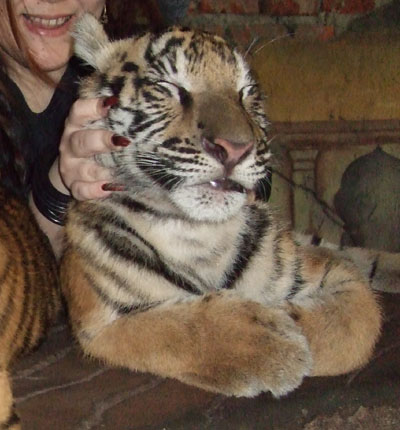 しかし、チマくても最強クラスの肉食動物のクセに、このヤラレッパっぷりってどうよ?(笑) ちょうどお客の切れ目時だったのか、一緒に行った友達と私の2人きりだったので、まぶり付き放題! 係の兄ちゃんもヒマだからか、「じゃ、今度はこの角度で!」とかもう、アタシらグラビアアイドルなの?ぐらいの勢いで写真撮ってもらいまくりのイジリ倒しまくりでした。 うおーー!フワフワじゃーーー!と、彼らの体に顔をグリグリグリーーーと押し付けても全然平気だしさ。 ちなみに年賀状の写真では咬まれてるけど(笑)、全然痛く無かったし。 (一緒に行った人は咬まれてなかったけど、私はやっぱり肉々しいからか、手といわず腕といわず、アムアム咬まれまくった(笑)) 日本でもそこら中にサファリパークはあると思うし、子虎と写真を撮れる!くらいのところはいくらでもあると思うけど。 一緒に行った友達曰く、 「こんなに何枚も何枚も写真は撮れないし、こんなに長時間触りまくれない!」と。 実は私達がこのコーナーに着いた時、ガイジンさんカポーとあと家族連れがいたんだけど、それぞれ満足いくまで堪能してるから、私達の番になるまでプチ時間がかかったけど、この撮影コーナーはホワイトタイガーの館にあるので、待ってる間、ホワイトタイガーを見てれば、別に待ち時間も苦じゃなかった。 インドネシア人は「お客様をお待たせする」事に、かなり無頓着なんだけど、こんなところでも遺憾なく発揮されてました(笑)。 このサファリパークでは、子虎の他に、オラウータンの赤ちゃんとも写真が撮れる。 子象に餌をあげられる(餌は買わされるけど)。 あ!日本のサファリじゃあまり無さそうなこのサファリのセールスポイントで「象に乗れる」があるですよ。 そしてその象に乗ってサファリパーク内の草食動物ゾーンをお散歩出来る! シマウマやデカいサイにまみれながら、象の鼻シャワーを浴びられる(嬉しいのか?!)!! ほーらほら〜 バリに来たくなってきたっすか〜? ってワケでお待ちしてますよー!(笑) 今年も宜しくお願いしますね!! 。゚+.Σd(。ゝω・´) |